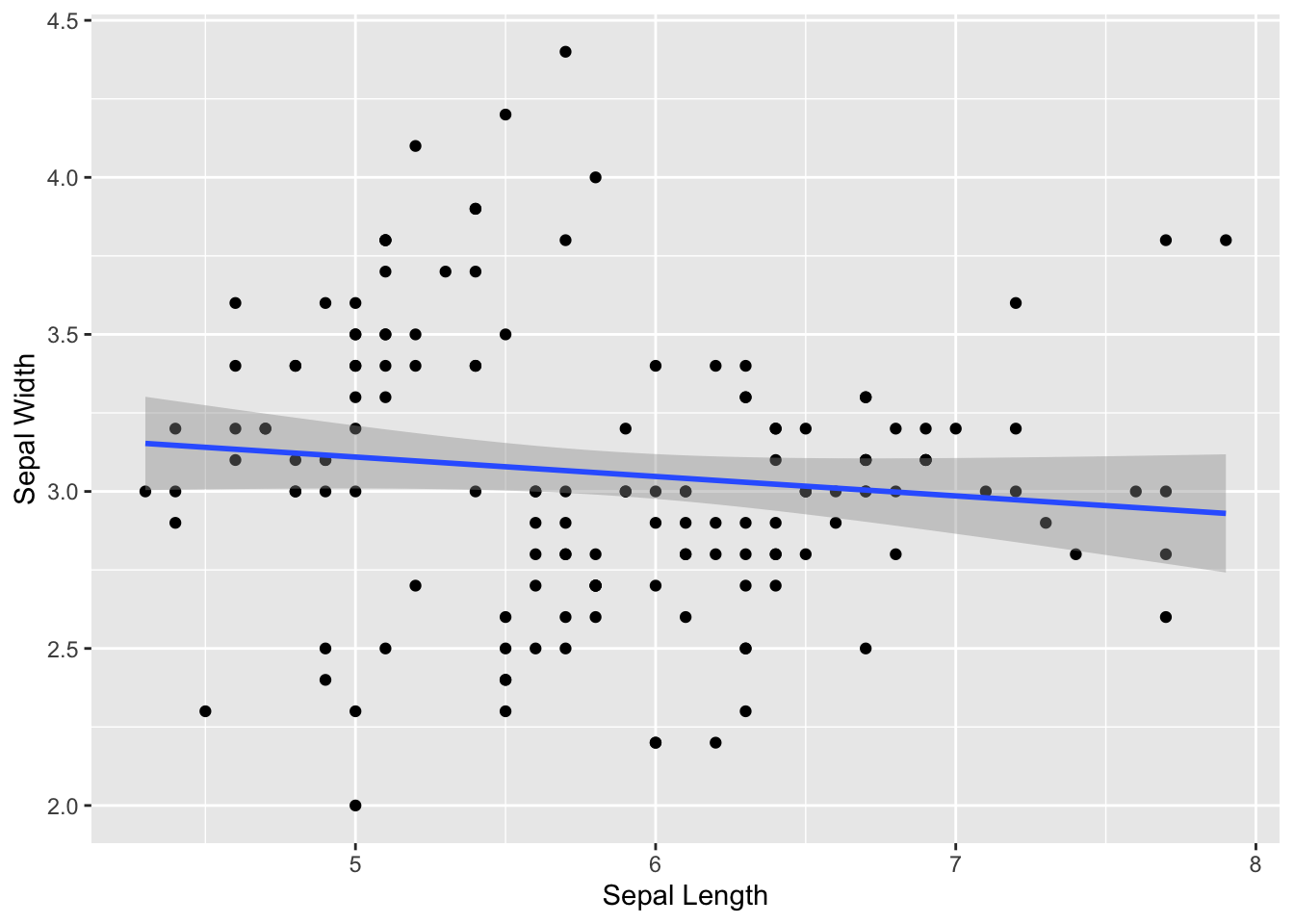 ggplot(iris, aes(x=Sepal.Length, y=Sepal.Width)) +