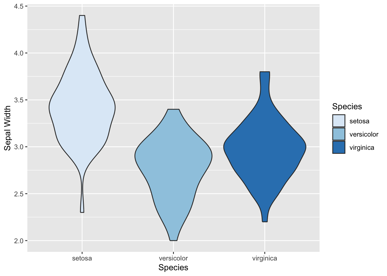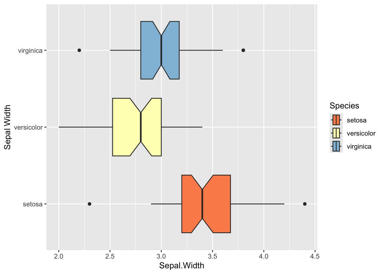 ggplot(iris, aes(x= Species, y=Sepal.Width, fill=Species)) +