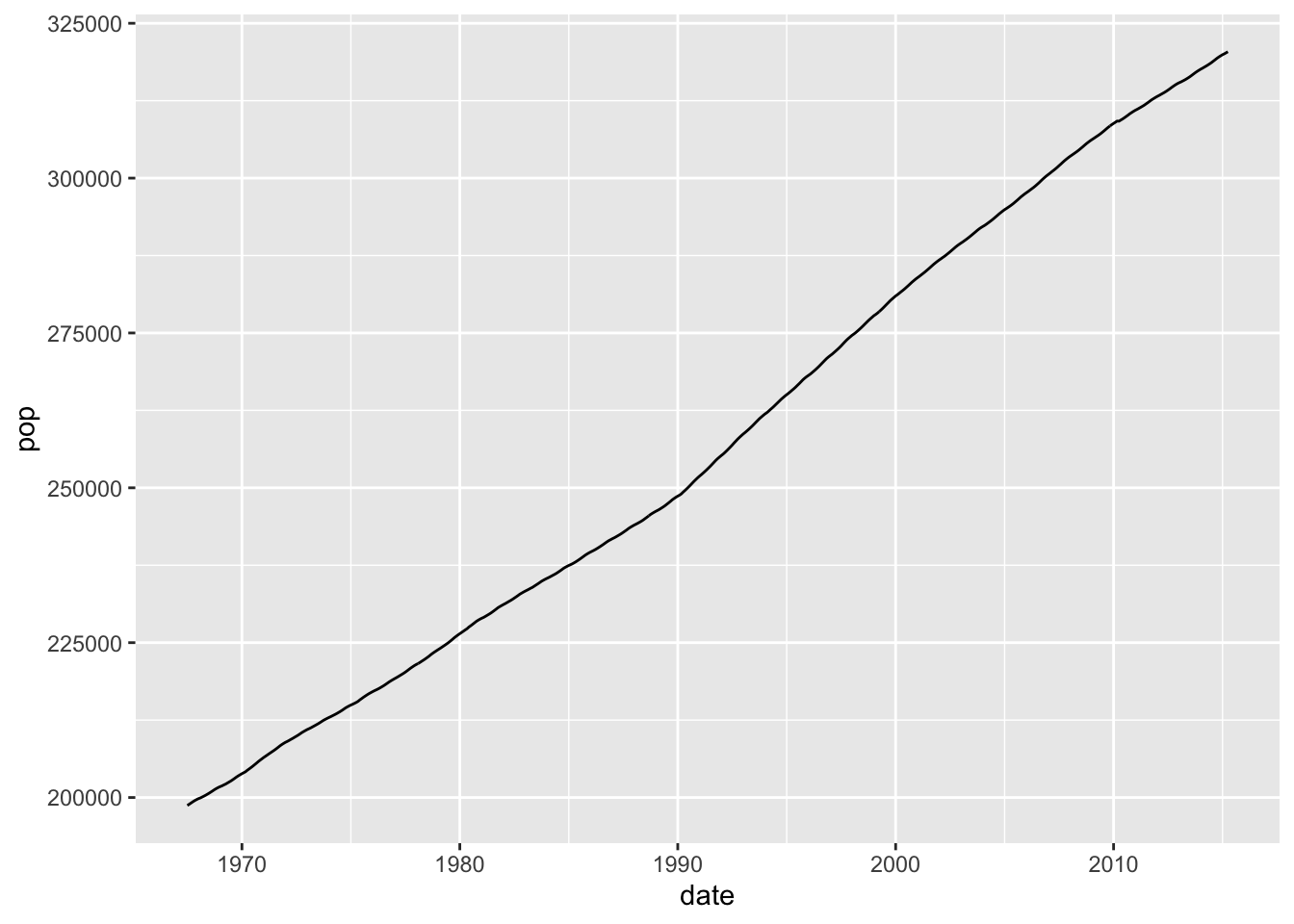 This data is already nicely organized, so we can simply plot a metric, say the population size, across time: