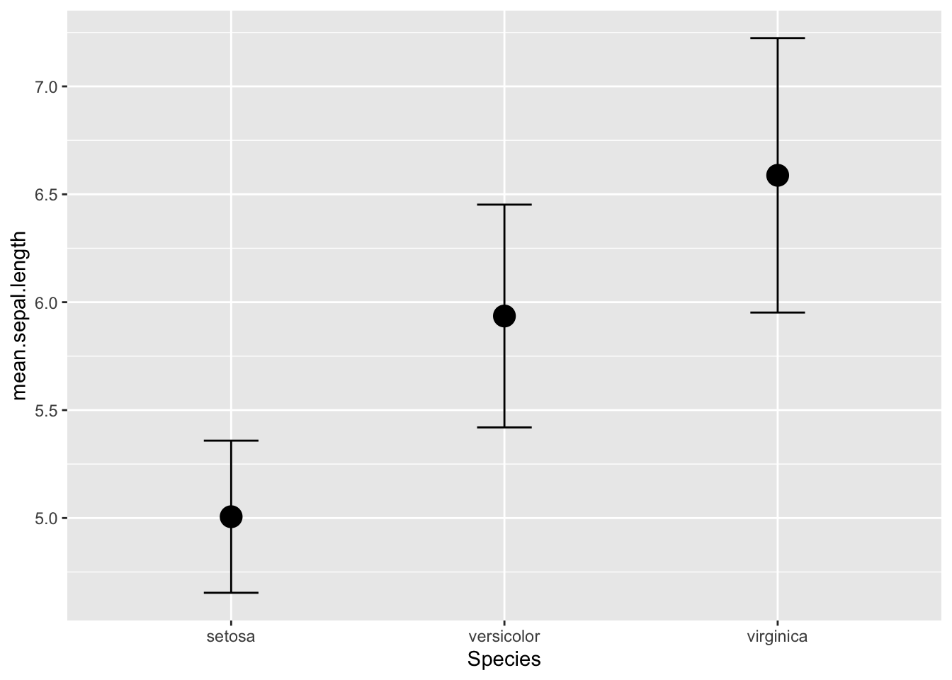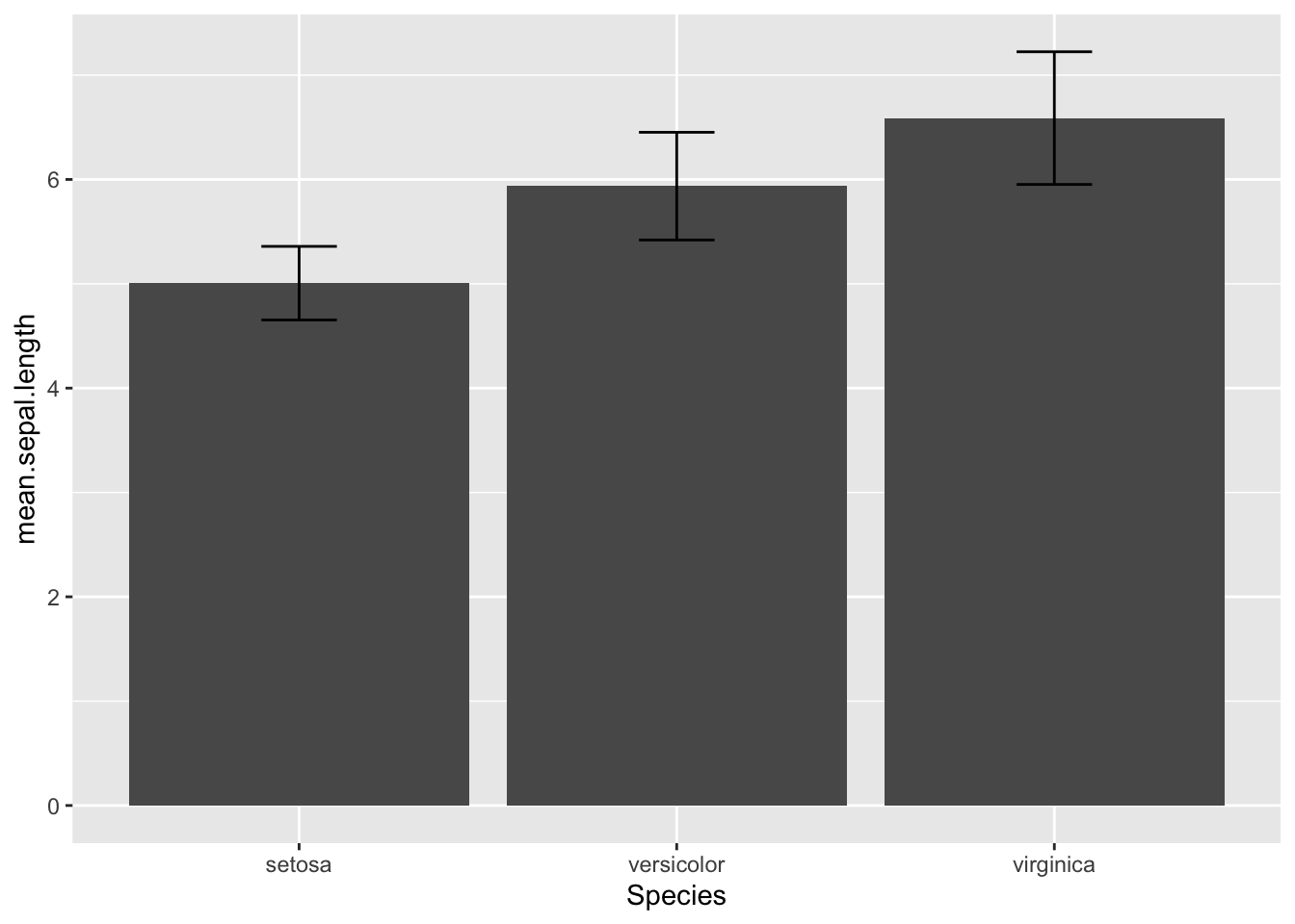 geom_errorbar(aes(ymin=mean.sepal.length-sd.sepal.length, ymax=mean.sepal.length+sd.sepal.length), width=0.2)