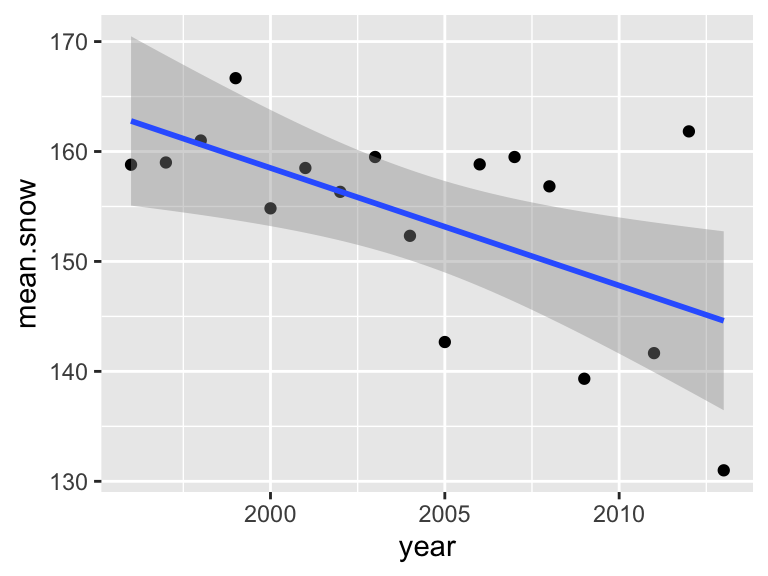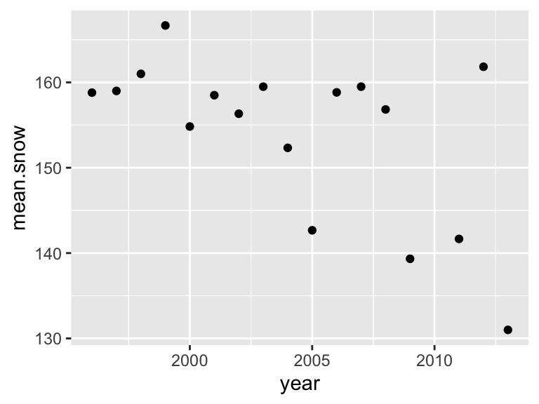 p1=ggplot(year.dat, aes(x=year, y=mean.snow)) +