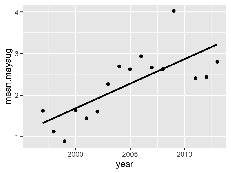 p3=ggplot(year.dat, aes(x=year, y=mean.mayaug)) +